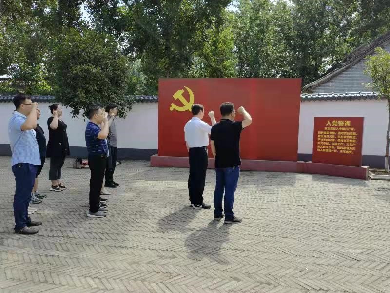 通过历史图片、文献资料、陈列实物,党员们重温了革命战争时期共产党员杨士颖、刘友三、刘福僧等革命先辈在南阳开展党的活动时艰苦卓绝的奋斗历程;随后在党支部书记史政海和高东晓的带领下面向党旗,重温了入党誓词。