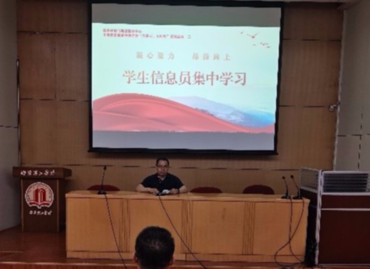 教学评估与质量监控中心副主任郭俊杰指出学生教学信息员是高校教学信息收集的重要来源,是教学质量监控体系的重要组成部分。强调要充分发挥学生教学信息员在提升教育教学质量中的作用,及时、准确反馈教学运行状态及教学管理信息,为提升学校教育教学水平和即将到来的本科教育教学审核评估做出应有的贡献。全体与会人员集中学习了学校印发的《本科教学工作审核评估应知应会手册(学生版)》中的相关内容。